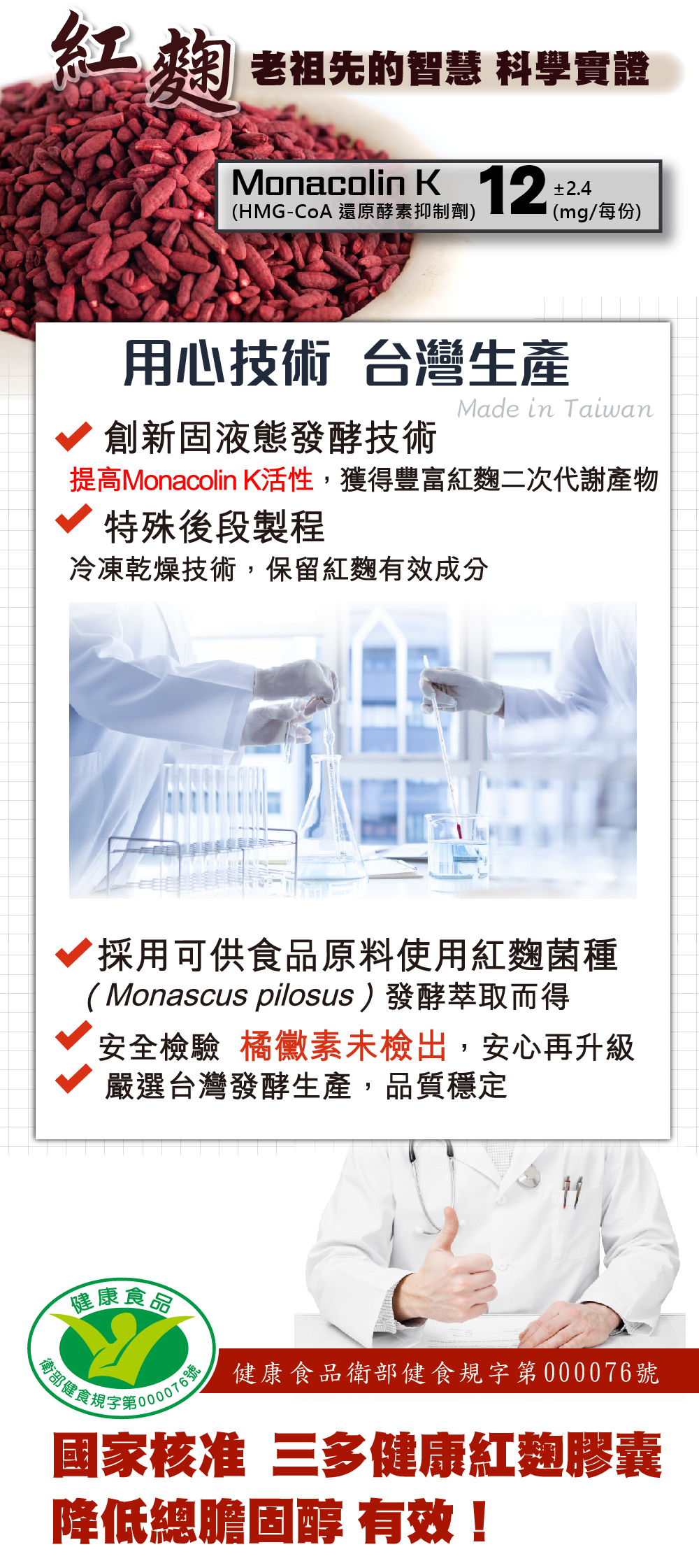 ✅採用衛福部核可紅麴菌種Monascuspilosus經發酵萃取而得