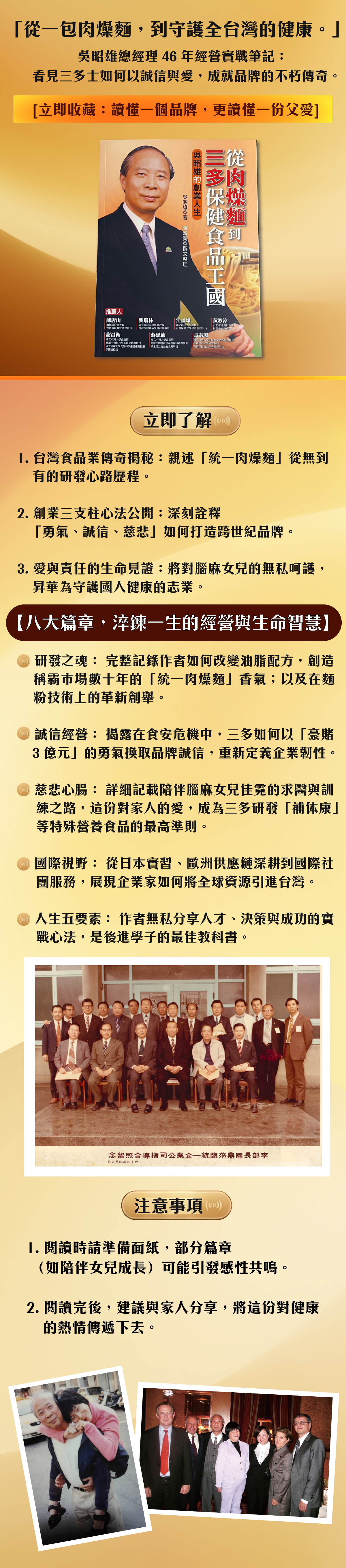 本書主要是作者從童年時光、求學與家庭、進入職場及創業成功奮鬥的故事,希望藉由創立企業「勇氣、誠信與慈悲」的信念能帶給讀者成功的借鏡!