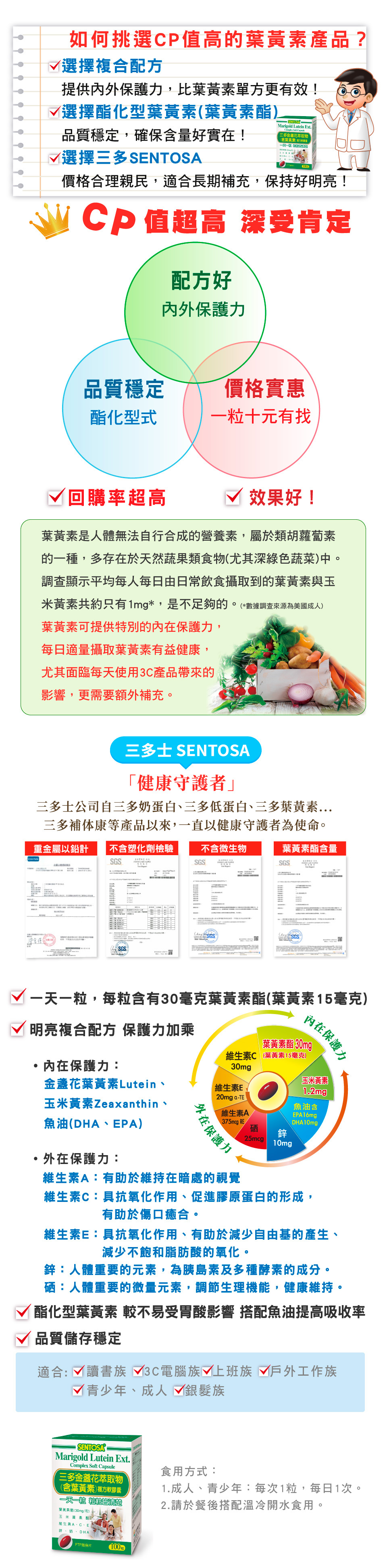 ✅每粒含葉黃素酯30毫克、玉米黃素