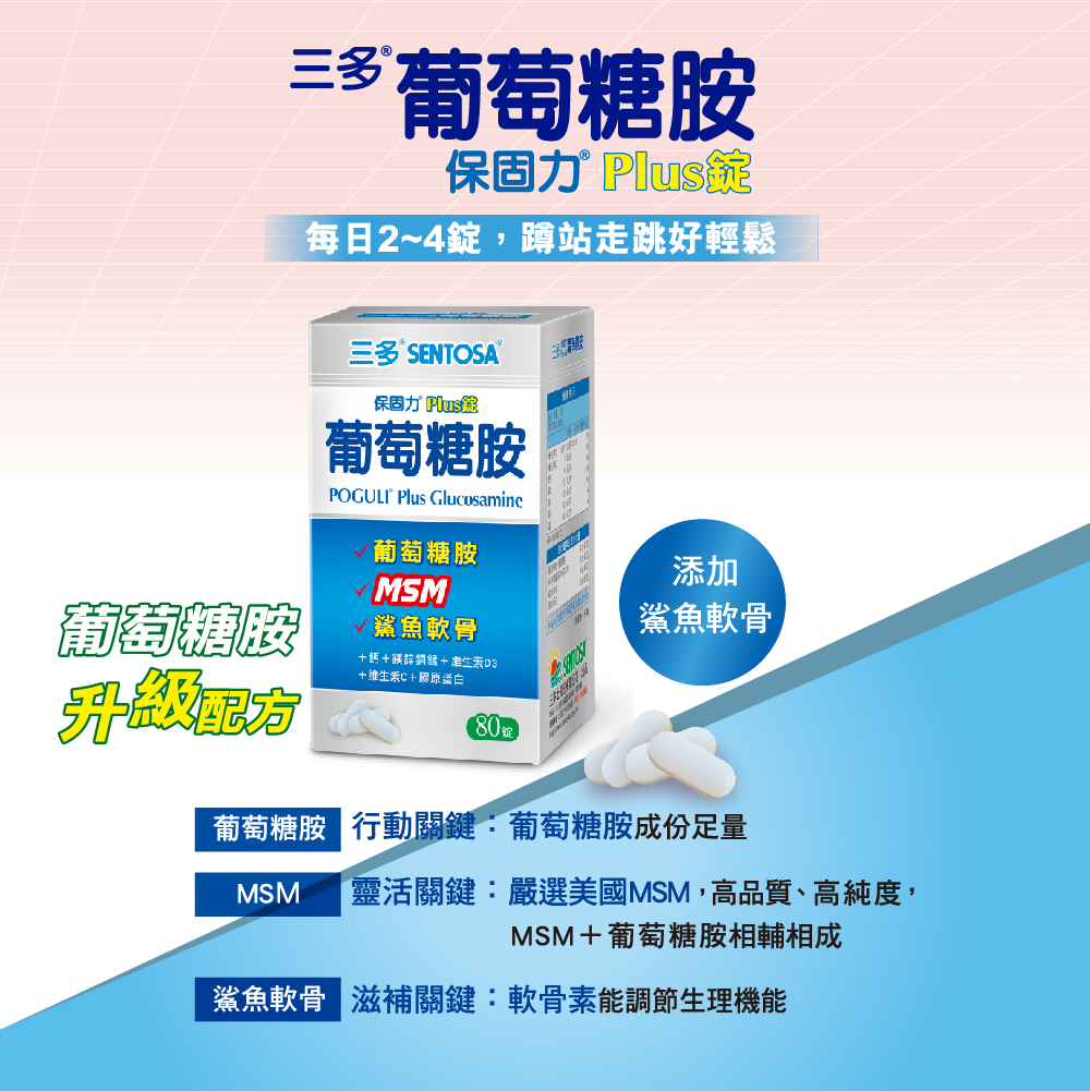 • 葡萄糖胺天然來源,成份足量