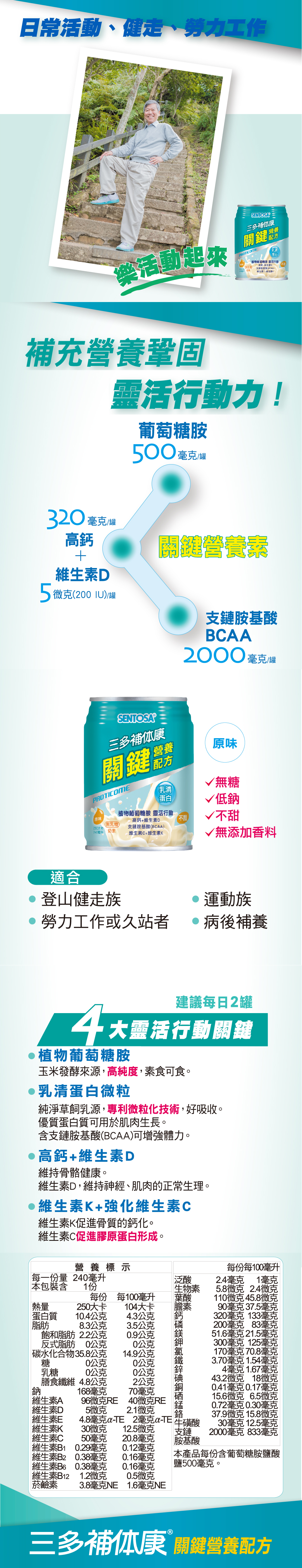 • 高鈣+維生素D,維持骨骼健康