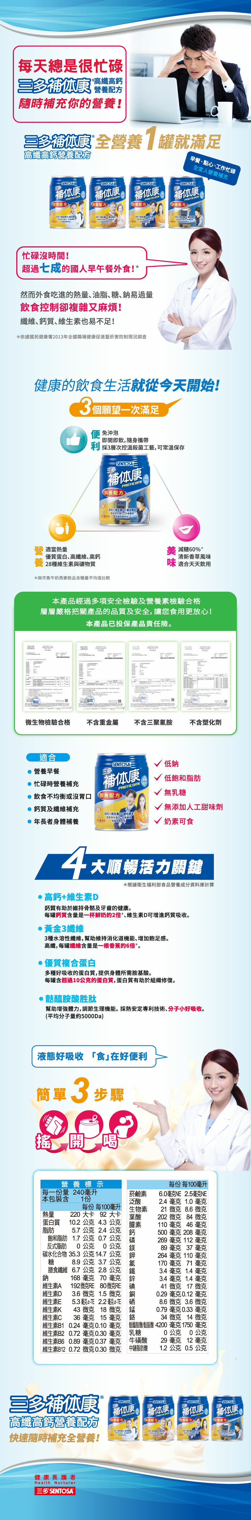 三多補体康®高纖高鈣營養配方(240mlx8罐/盒)-熱銷缺貨中