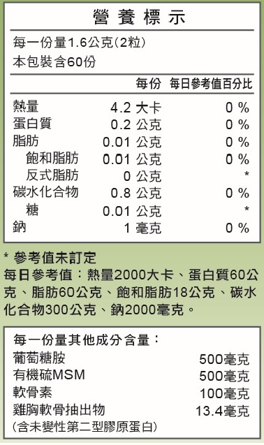 1. 雞胸軟骨抽出物(含未變性第二型膠原蛋白)